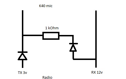 I teraz nasuwa się pytanie, czy potrzebne Volty można pobrać z RX zgodnie z poniższym schematem, montując to wewnątrz mikrofonu??