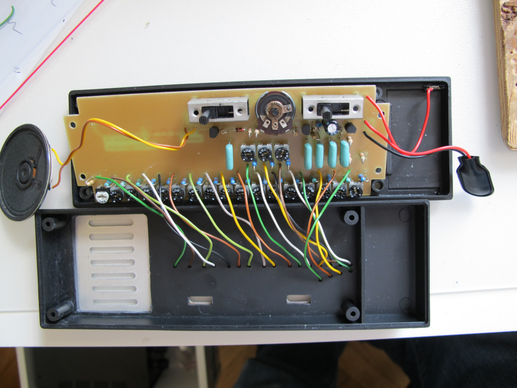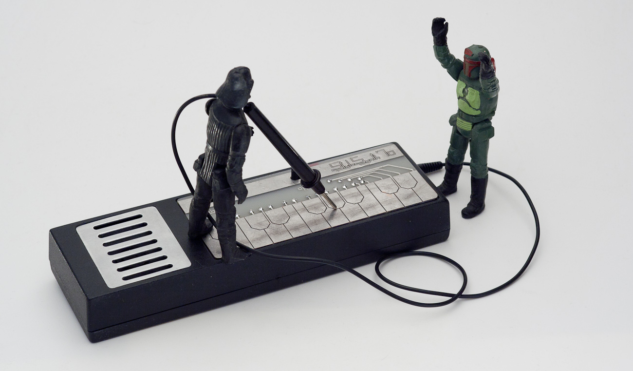 Na przodzie obudowy widnieją w przełączniki – włącznik zasilania i włącznik efektu vibrato. Z boku obudowy znajduje się gniazdo do podłączenia stylusa. Na spodzie obudowy mamy potencjometr służący do dostrajania generatora oraz klapka koszyka baterii.