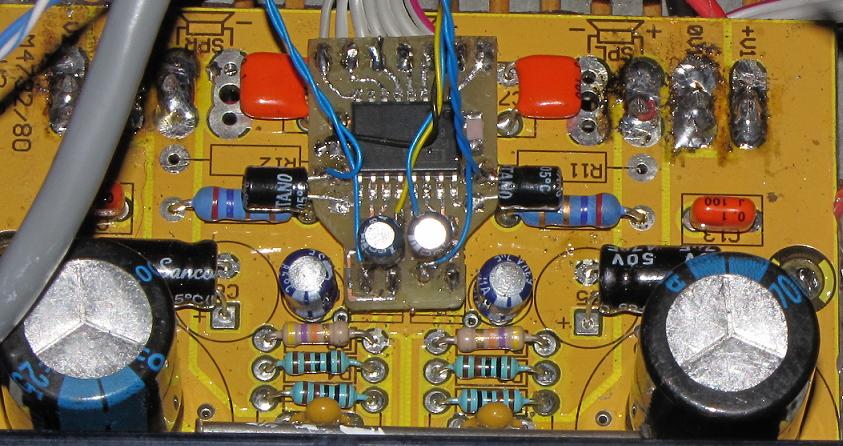 Autor użył tego układu wraz ze wzmacniaczami na lm386, ze względu na ich prostotę, małą ilość części zewnętrznych oraz popularność. W projekcie zastosowano układy Maxim'a DS1868 - podwójny cyfrowy potencjometr, oraz mikrokontroler pic.