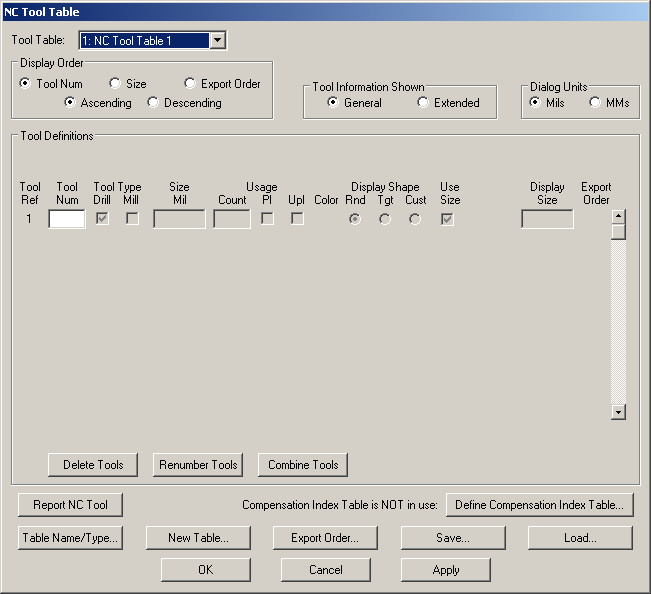 i później uzupełnić brakujące dane o specyfikacji otworów za pomocą narzędzia NC tool table.