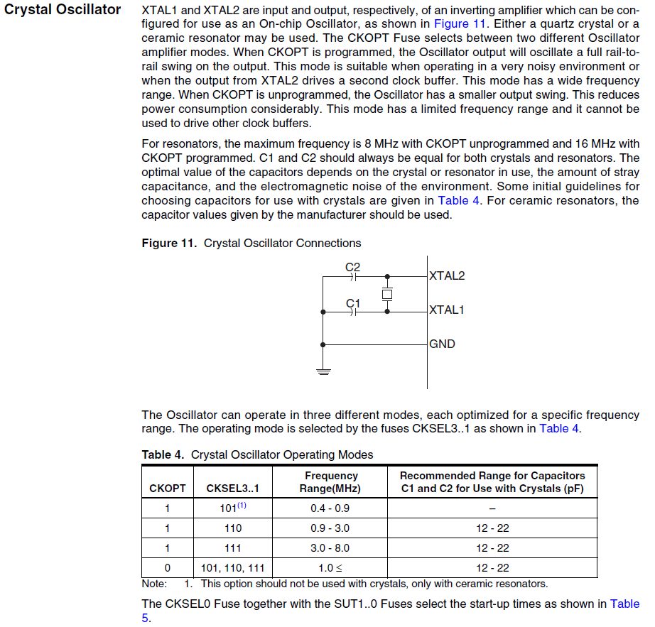 Do 9 i 10 nóżki procesora podłączony jest kwarc 8MHz (wysoki) a za nim dwa kondensatorki ceramiczne 27-33pF (nie pamietam ile mają).