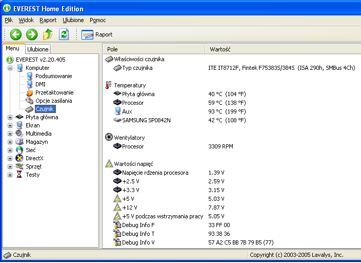 Temperatura 'Aux' nie jestem pewien czy jest to zasilacz ale tamperatura utrzymuje się powyżej 90 stopni i dochodzi często do 100.Gdy dotykam obudowy zasilacza to jest zimny.