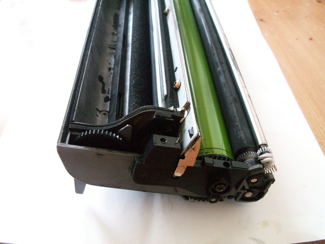 Bardzo prosze o pomoc i fachowe porady - najlepiej jakies zdjecie pogladowe jak ta blaszke zamocowac (najprawdopodobniej powinna ona byc gdzies przy takich 2 walkach znajdujacych sie w tylnej czesci modulu bebna - w przedniej czesci modulu bebna jest zbiornik na toner).