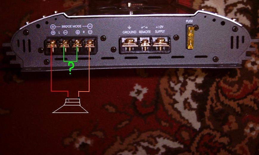 Witam wszystkich, zakupiłem ostatnio wzmaciacz blaupunkta o mocy 2x160W lub 1x400W oczywiście wartości RMS są dużo mniejsze, na 1 kanale wyciaga 160W.A teraz do szczególu! Problem mam w tym że chciałbym go właśnie zmostkować aby pracował w systemie 1x160W.Prawde pisząc to nie mam zielonego pojęcia jak to zrobić. No cos mi się tam kiedys o uszy obiło ale nie chce ryzykować. Przedstawiam zdjęcia tego piecyka i nakreslony sposób podłaczenia takiego mostka.Pytanie,czy wyjścia oznaczone na zielono mam ze sobą łączyć?