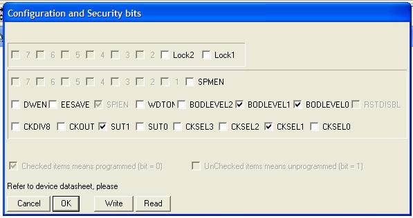 Problem pojawił się wraz z ustawieniem fusebit, wg projektu powinno to być tak jak na dołączonym rysunku, jednak gdy tak to ustawie jest zero reakcji ze strony układu, nic nie działa. Co może być nie tak ?