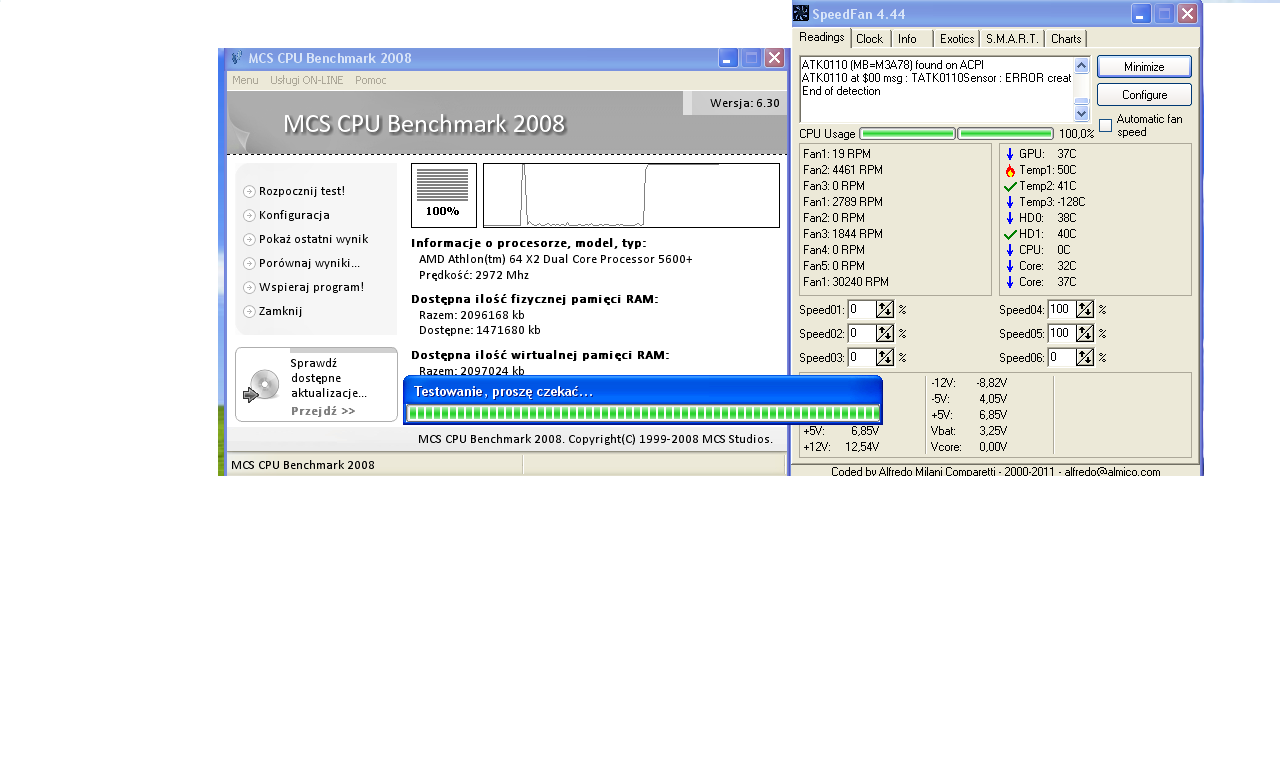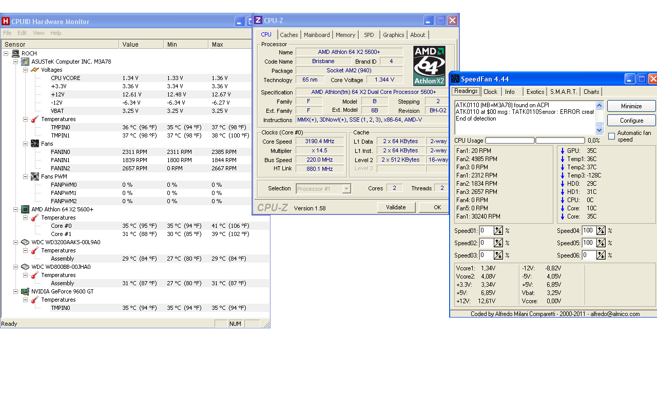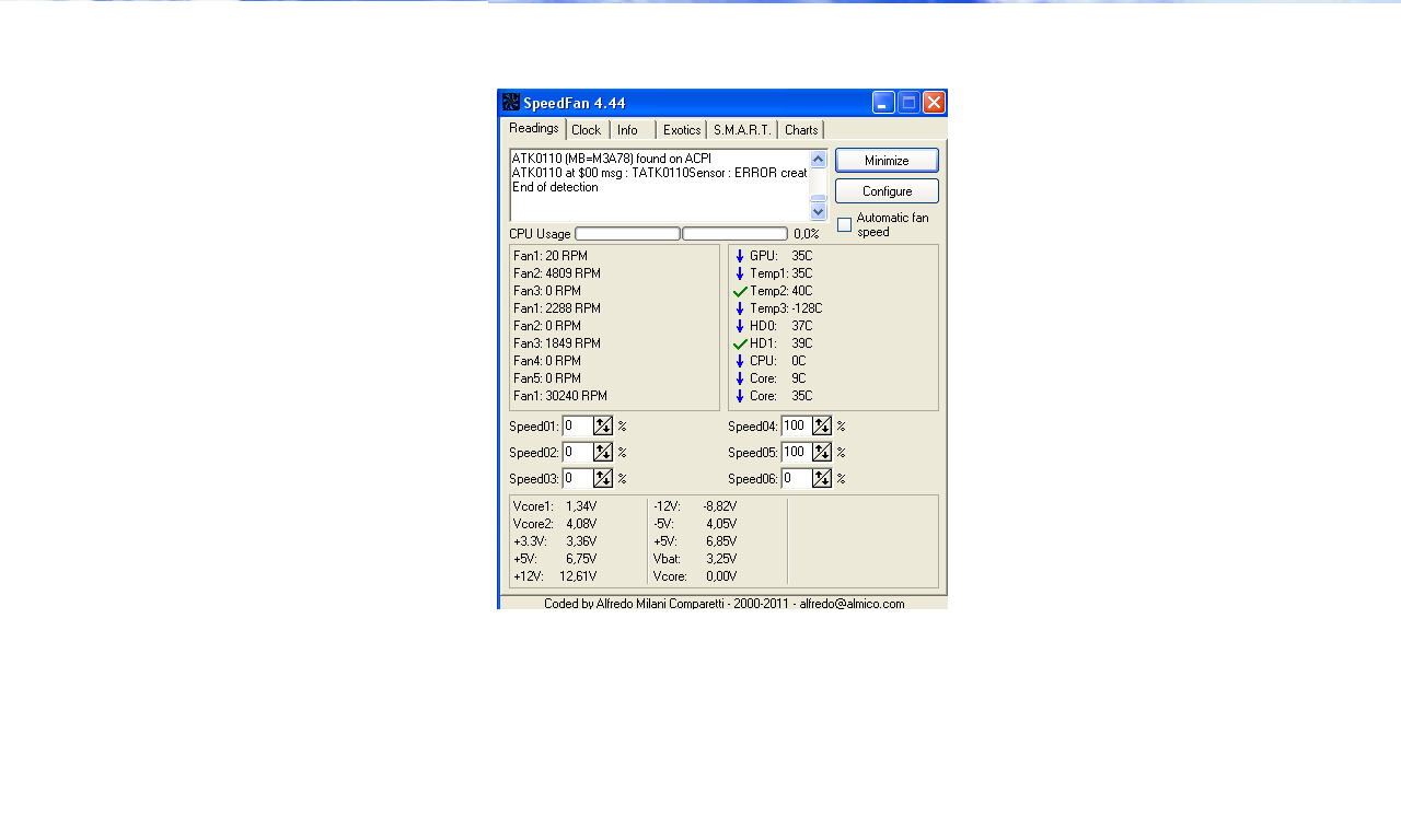 Teraz temperatury ~10 minut po włączeniu komputera (został jedynie załączony speedfan) :