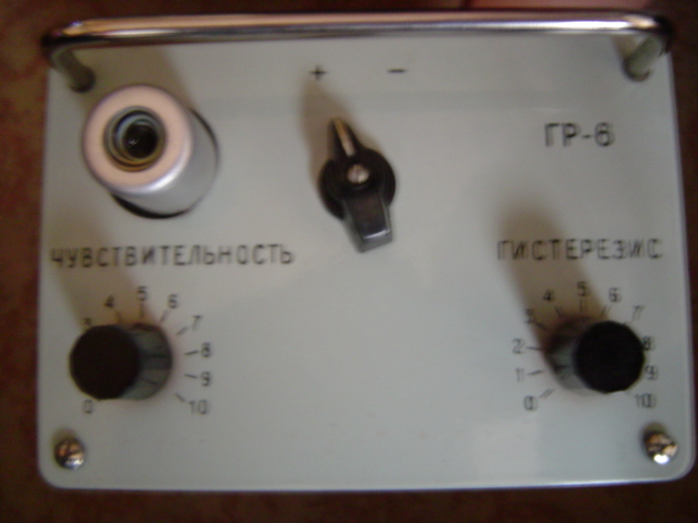 wyglada to nastepujaco:dluga prostokatna,metalowa obudowa(jakies 40cm)z szybka na czele.na panelu znajduja sie nie zrozumiale dla mnie napisy(w stylu чувствительность i гистерезис, troche wiekszym drukiem jest napisane гр-6). w srodku znajduje sie dosc spore trafo,peki kabli,spore kondensatory, jedna lampa ktura wystaje na panelu,i 3 dziwne szklane banieczki z trzema elektrodami, przekaznik i jeszcze jakas plytka z elektronika. z tylu sa 2 magiczne okragle wyjscia albo wejscia, jedno na 4 piny a drugie na 12.