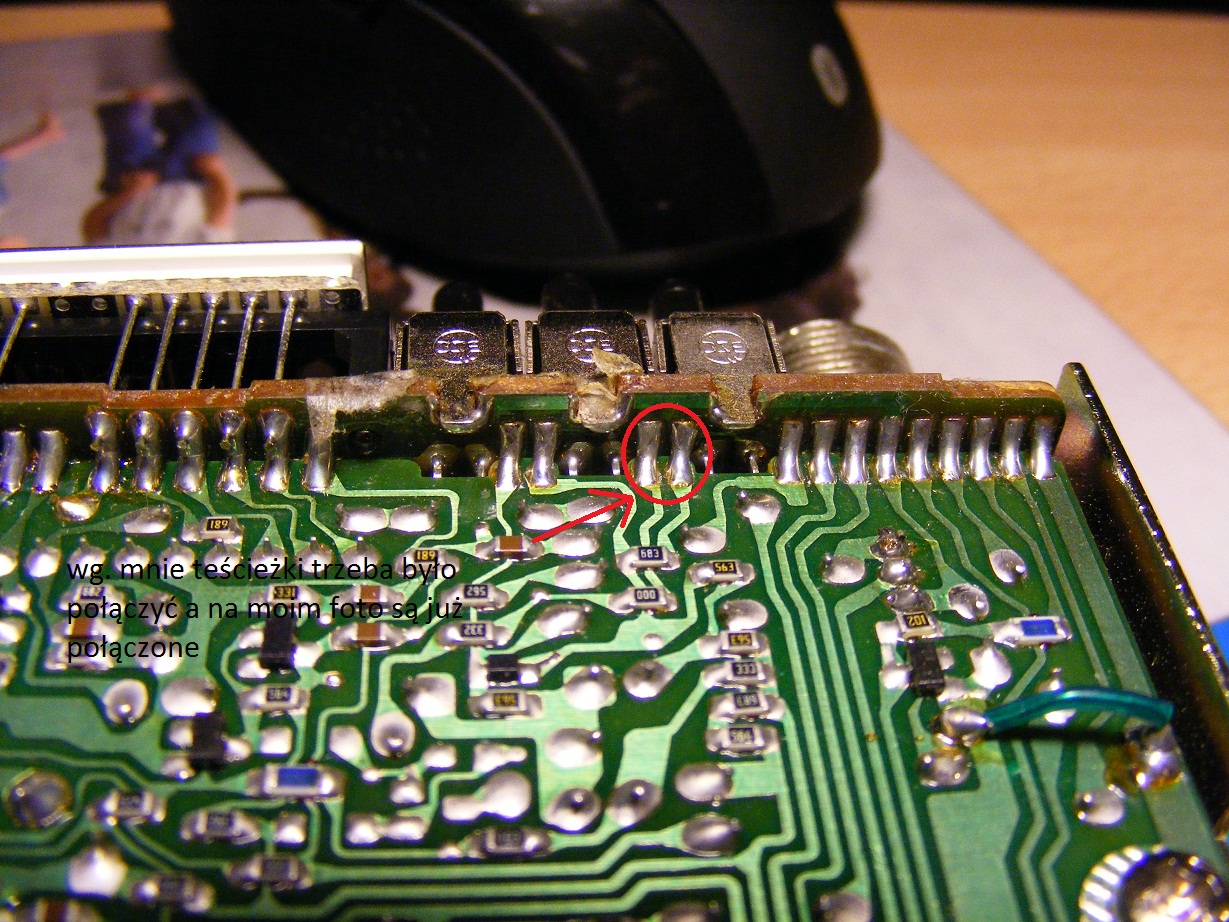 Jak widać na obrazku z tego linka trzeba połączyć ze sobą dwie ścieżki i przeciąć również dwie inne... W moim jednak wypadku ( przynajmniej w moim odczuciu ) dwie pierwsze ścieżki, które trzeba połączyć są już połączone, a o te dwie, które trzeba rozłączyć chciałem zapytać... Czy chodzi o te na foto nr.3 ?? Dlaczego też jest tak, że te ścieżki do połączenia w moim wypadku są już połączone? Czy te radyjka występowały w tak różnych wersjach, czy to może moja zła interpretacja tematu prowadzi mnie do złego tropu...?