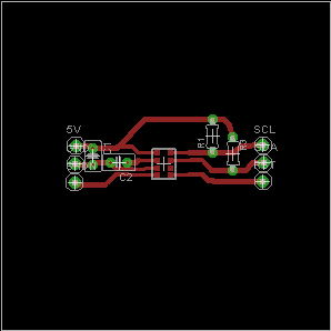Z racji tego, ze jestem mocno początkujący, chciałbym zweryfikować mój schemat. Czujnik jest w obudowie LGA8, nie mogłem znaleźć odpowiedniej bilbioteki do Eagle więc element stworzyłem sam. Korzystam z zestawu uruchomieniowego, wiec chciałem stworzyć płytke która ułatwi mi podłaczenie czujnika za pomoca kabli.