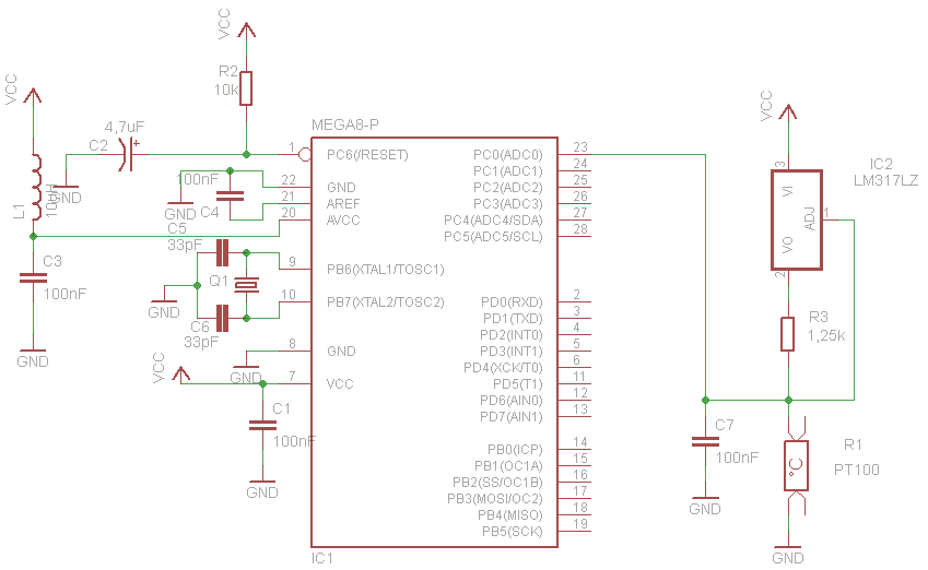 Może temat był kilkakrotnie poruszany, ale takiego sposobu podłączenia PT100 do atmegi np mega8 nie było.