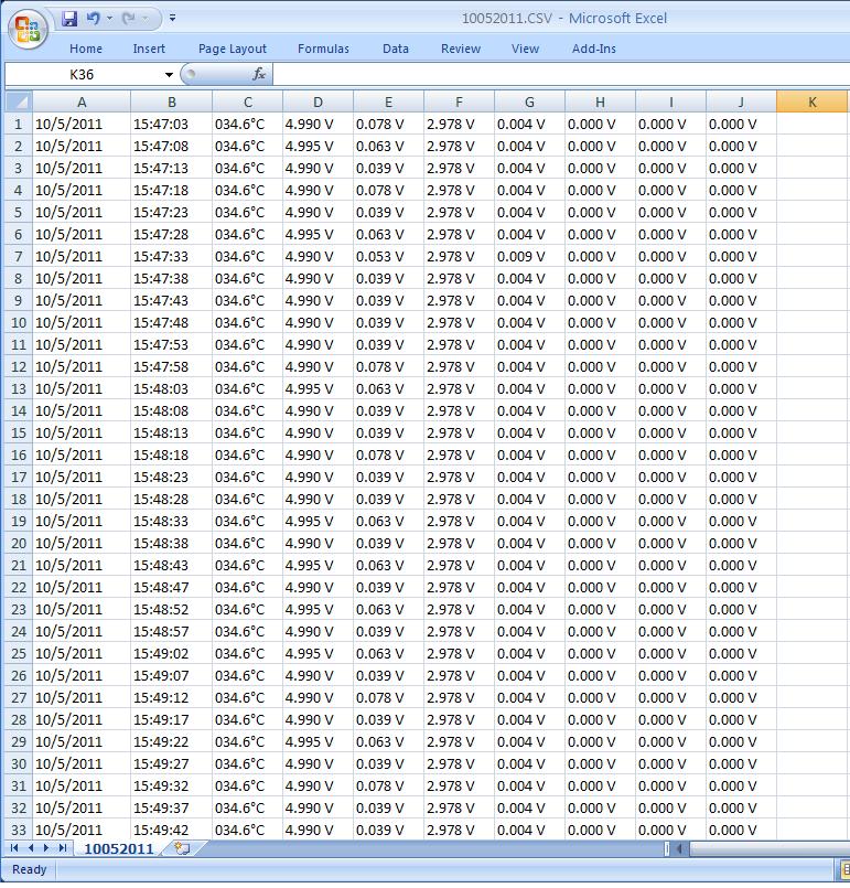 Korzystając bibliotek Dharmani'ego [url=]http://www.dharmanitech.com[/url] (FAT32, SD, UART, SPI) stworzyłem sobie układ który zapisuje dane z czterech przetworników na kartę SD jako pliki *.csv. Konstrukcja pliku wygląda mniej więcej jak na zdjęciu: