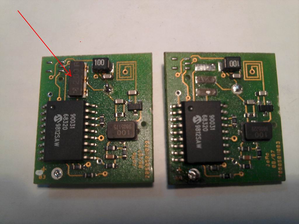 Jaki to jest element oznaczony strzałką na załączonym zdjęciu ? Na prawej płytce widać tylko miejsce na ten element (musiał sam odpaść) mam nadzieję że jak go wlutuję to ten pilot też zadziała. Tylko że nie wiem co to za element ...