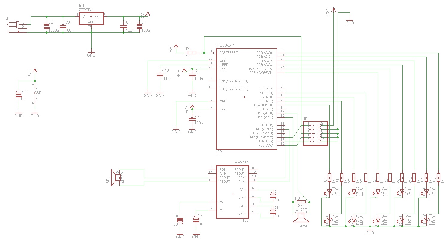 Witam. Postanowiłem zrobić dalmierz ultradźwiękowy oparty na uP atmega8. Przetworniki których używam to SR40-12 i ST40-12. Z nadajnikiem nie mam najmniejszych problemów, używam PWM z timer1, generuję sygnał 40khz (wypełnienie 1/2), następnie z OCR1A i OCR1B wysyłam sygnał na wejście układu MAX232 (z OCR1B sygnał jest odwrócony) i dalej z MAX232 na nadajnik. Napięcie jakie uzyskuję to 20V między szczytami. Gdy odbiornik bezpośrednio podłączę na wejście komparatora AIN0 (AIN1 jest zwarte do masy) to maksymalna odległość jaką otrzymuję to 40 cm. Zależy mi na odległości maksymalnie 1.5 - 2 m. Ogólnie jeżeli między nóżkami odbiornika umieszczę rezystor 3,9kohm to otrzymuję podczas odbioru sygnał 40khz o amplitudzie 200mV. Wiem, że temat jest oklepany, widziałem wiele schematów, ale nigdzie nie mogłem znaleźć rozwiązania które by mnie satysfakcjonowało. Niestety nie mam stałego dostępu do oscyloskopu dlatego też dużo rzeczy muszę robić 'na czuja'. Najbardziej by mnie satysfakcjonowało rozwiązanie gdzie przy wykryciu echa na wyjściu z układu odbiornika dostawałbym stan wysoki, wtedy mógłbym użyć przerwań (INT0). Mógłby ktoś naprowadzić mnie na właściwe rozwiązanie? Jest to mój pierwszy post na elektrodzie i pierwszy większy projekt, liczę na wyrozumiałość
