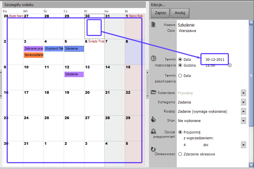 Przy projektowaniu programu główny nacisk położono na intuicyjność jego obsługi, tak, aby praca z nim nie wymagała przedzierania się przez gąszcze menu. Dzięki predefiniowanym rodzajom zdarzeń dodanie nowego zadania to zaledwie kilka kliknięć myszką.