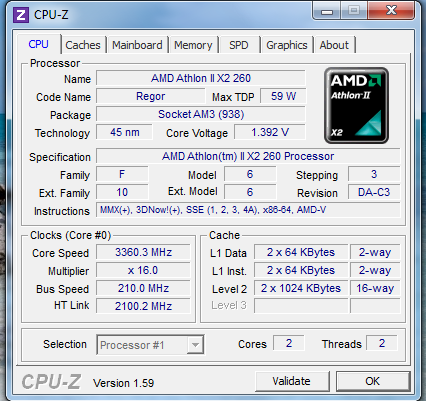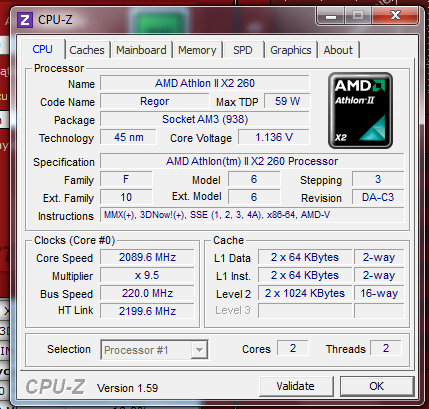 Procesor: AMD Athlon(tm) II X2 260 Processor 3.20GHz