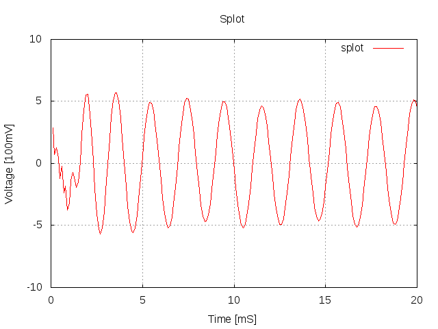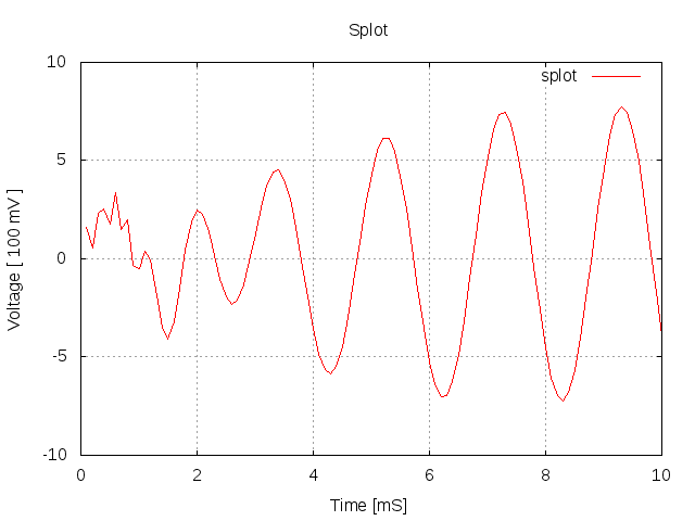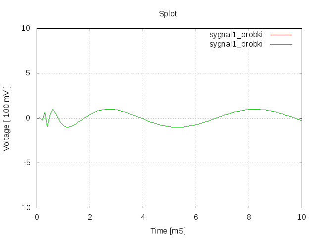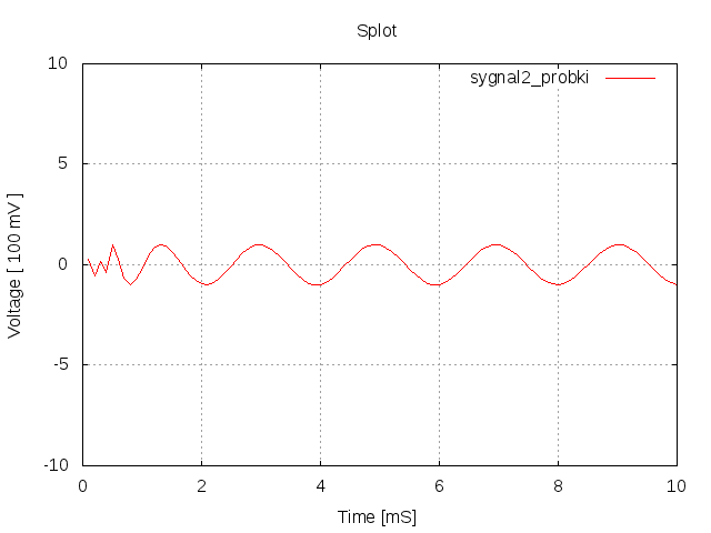 Po policzeniu 100 próbek 1 sygnału i narysowaniu go w programie do wykresów dostaje taki wykres: