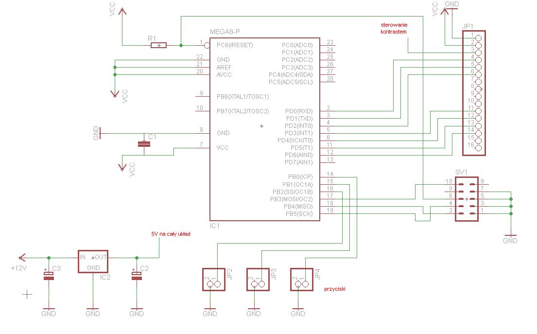 Gdy układ zaprogramuje, na wyświetlaczu widoczny jest tekst itp. Odłączę układ od USB nadal działa jednak jak na sekundy odetnę zasilanie układu wykonawczego i wyświetlacza to tak jakby ATMega8 się czyści - na wyświetlaczu widać tylko górny pasek kratek, który jak się nie mylę oznacza dobrze podłączone zasilanie i kontrast ale brak danych wejściowych.