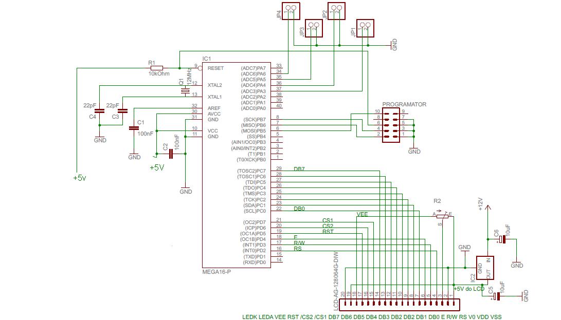 Na schemacie tam gdzie jest +5V to wszystko rozchodzi się od stabilizatora z prawego dolnego rogu.