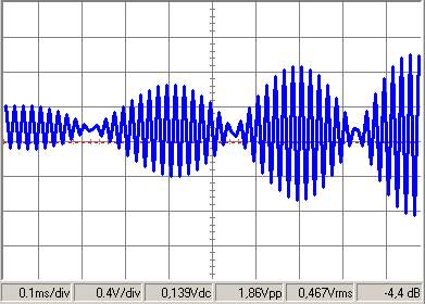 Następnie zmniejszyłem odstęp sygnału od szumu zwiększając napięcie w.cz. lokal na pierwszy mikser.