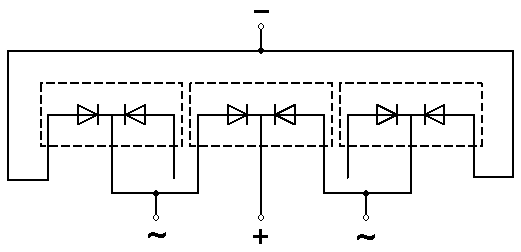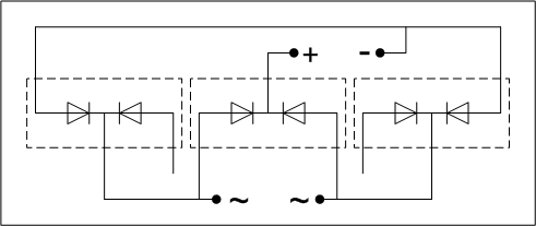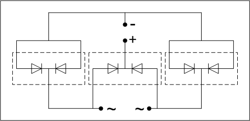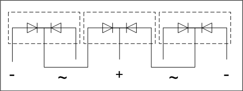 Dziwny problem W zasilaczu jest wiele lepszych diód prostowicznych, a często nawet gotowy mostek. Ale jeśli ktoś koniecznie chce z takich kostek, o których mówisz, to da się z 3 sztuk tak jak narysowałem.