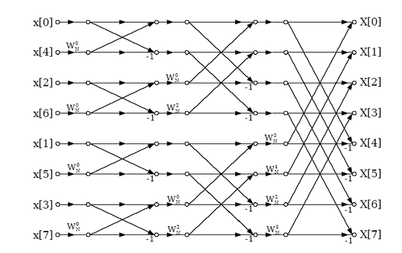 1.Najpierw muszę "przemieszać" próbki sygnału wejściowego w buforze, czyli te tzw motylki.