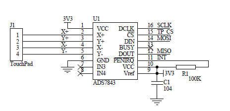 Przykład wyprowadzeń SPI w układzie ADS 7843