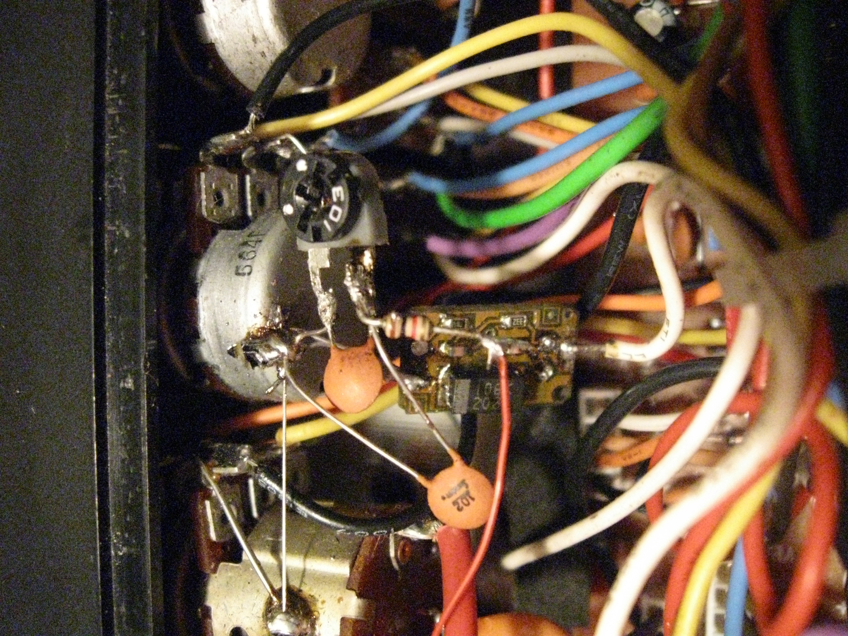 Biały przewód z gruszki, cieniutki czerwony zasilanie prosto z włącznika. Podejrzewam że ktoś zamiast dopasować gruszkę do radia dorobił radio do gruszki. Główny cel to uruchomienie tegoż radia,lecz wolał bym wywalić to ustrojstwo i zmienić mikrofon w gruszce na pasujący w miarę możliwości. Z organoleptycznych oględzin odkryłem również inną ingerencje w radio: