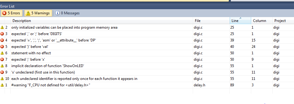 Kod jest z książki helionu Programowanie mikrokontrolerów avr od podstaw do zaawansowanych aplikacji książka z tego co widzę ma kody które da się kompilować w AVRstudio 4 . błędy sprawdzałem z książka tzn. poprzednimi działami i Google ale nic to nie dało.