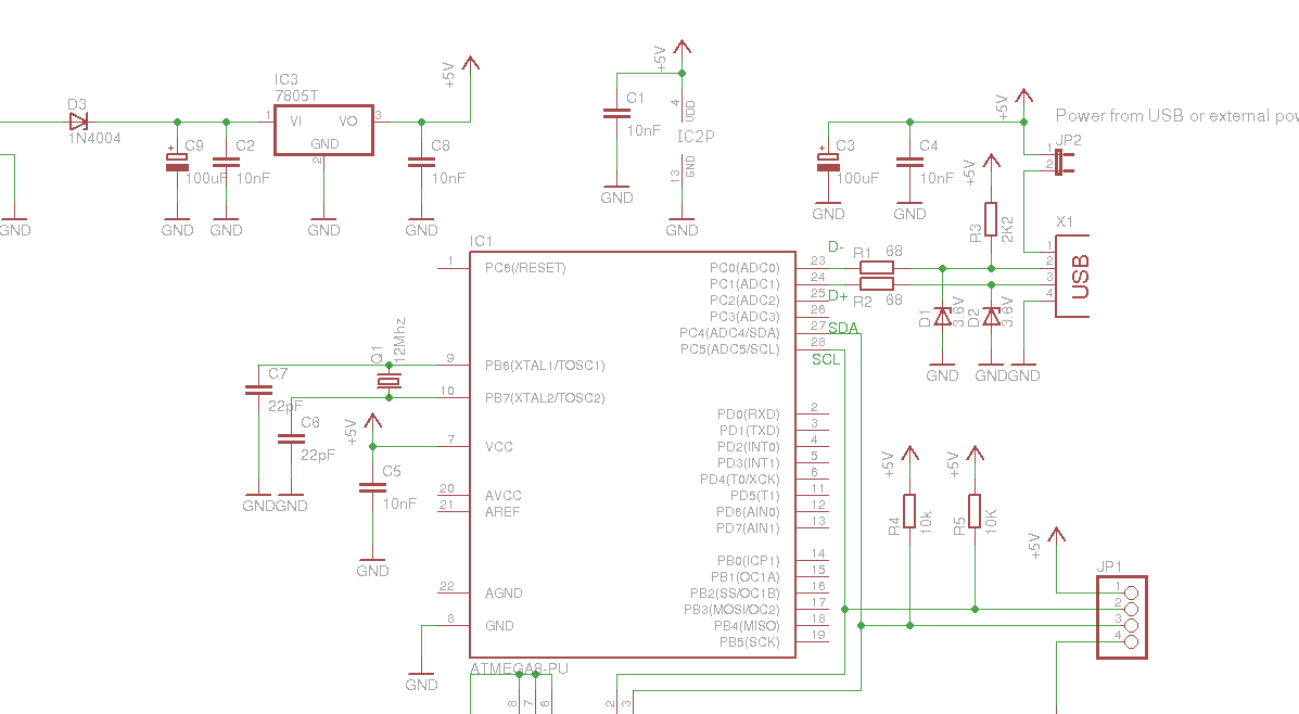 Chciałbym uruchomić konweret i2c-tiny-usb na układzie Atmega8. Na elektrodzie były już doniesienia, że ktoś zbudował działający konwerter na attiny45. Na stronie projektu http://www.harbaum.org/till/i2c_tiny_usb/index.shtml jest też wersja na Atmegę8 jednak nie udało mi się jej uruchomić. W udostępnionej paczce w katalogu firmware są źródła, które kompilują się bez problemu. Jest też opisane jak ustawić fusy oraz odpowiedni Makefile dla atmegi.