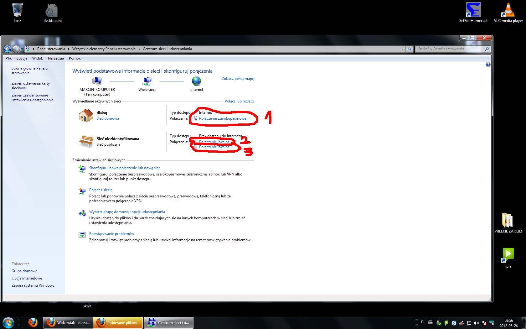 Połączenie internetowe to "3" czyli "połączenie lokalne2"