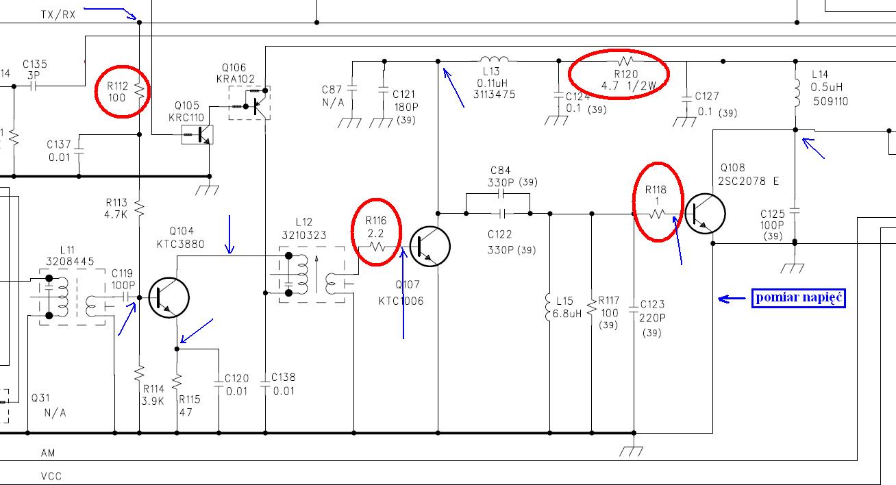 Napięcie na końcówce mocy jest 12V (stałe) podczas nadawania w trybie duża moc. Czyli klucz działa.