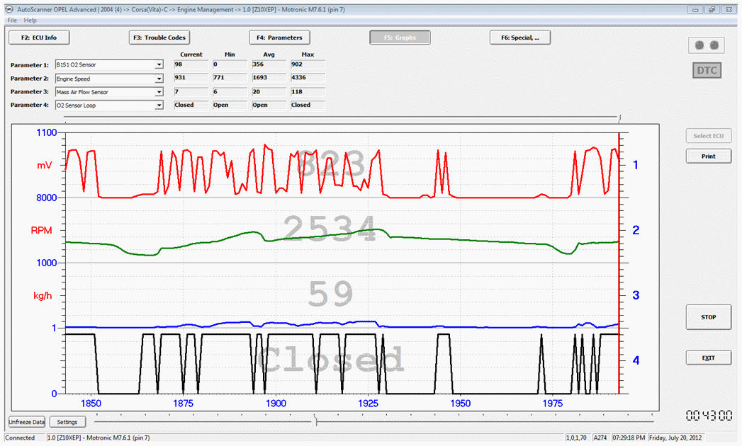 Załączam wykaz parametrów na biegu jałowym oraz zrzuty przebiegów z jazdy testowej.