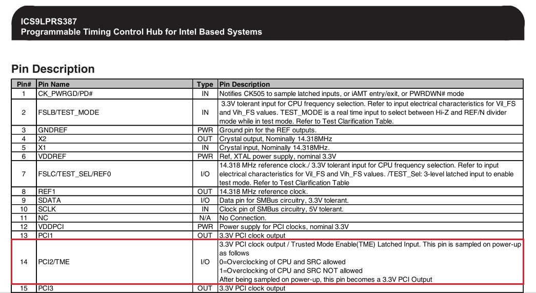 Dochodzę do wniosku, że zablokowane musi być na płycie głównej. Wyczytałem gdzieś, że jedną nożkę z PLL trzeba poprzez opornik 10k podłączyć do masy. To info nie sprawdzone i niepewne, nie wiem też którą nożkę.