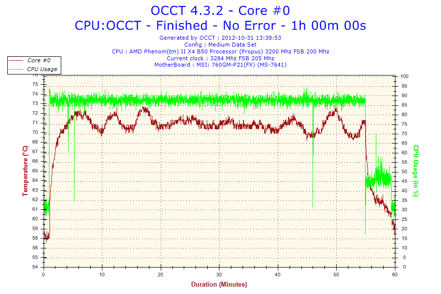 Test był robiony na boxowym chłodzeniu maksymalną temperatura była 72,5 °C najniższą 56 °C