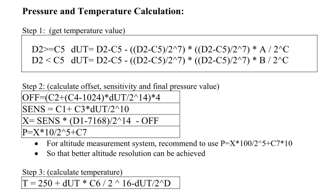 Witam, od jakiegoś czasu walczę z obsługą czujnika ciśnienia HP03s. Odczyt ciśnienia z niego polega na odczytaniu kilku parametrów z pamięci, dwóch wartości z przetwornika a następnie obliczeniu skomplikowanym wzorem.