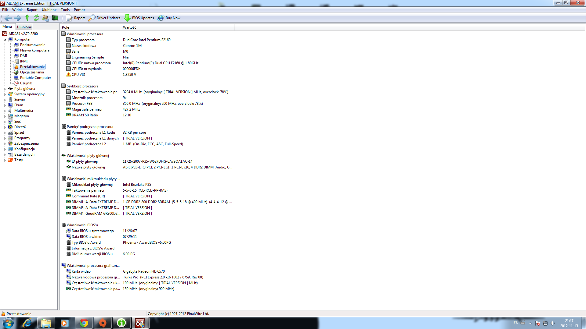 Dzis podkrecilem swoj procesor Intel Pentium Dual CPU E2160 z 1.8 na 3.2 na płycie głównej ABIT IP35