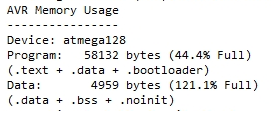 Czy to nie przeszkadza że pamięć danych jest przepełniona (121%)?