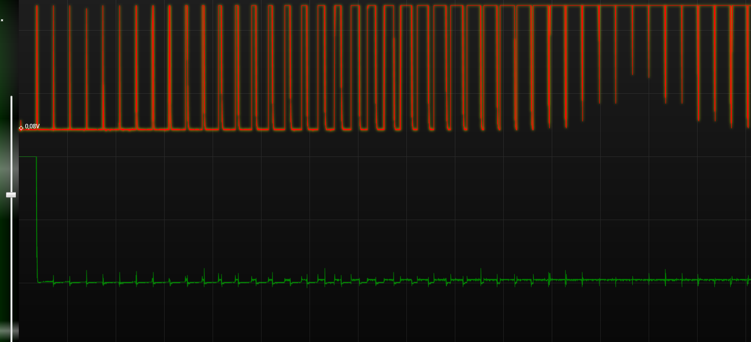 I przed driverem i za nim widać jak się ładnie kształtuje PWM, tak żeby byłą to pseudo sinusoida.