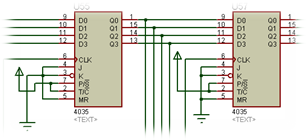 Kolejna para rejestrów przesuwnych służy do przechowywania danych w zależności od pożądanej operacji matematycznej: w przypadku naciśnięcia symbolu dodawania/odejmowania, dane wpisywane są do drugiego rejestru w tej parze układów.