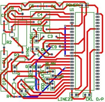 Próbuje uruchomić generator napisów przy użyciu układu Philips 5281zp. Płytka zrobiona wg schematu aplikacyjnego z noty katalogowej. Układ prawdopodobnie działa ponieważ pobiera prąd taki jak przewiduje dokumentacja oraz na wyjściu CLK O/P (40) pojawia się sygnał zegarowy o częstotliwości 13,5 MHz, czyli taki jaki powinien być. Sygnał wizyjny podaję na wejście CVBS układu (8) i spodziewam się otrzymać gotowy na wyjściu COR (21). Niestety tak nie jest. Obraz na tym wyjściu, zresztą jak na każdym jest czarny a pomiar oscyloskopem pokazuje, że wszędzie jest 0 V oprócz BLAN (20) gdzie jest sygnał 25 Hz. Układ inicjalizację następującym kodem: