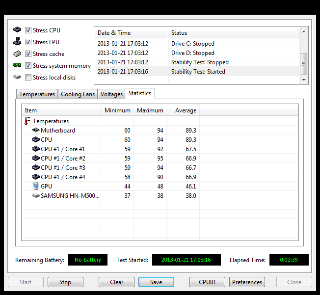 W programie Speccy w zakładce CPU podczas maksymalnego obciążenia i po przekroczeniu 90 stopni taktowanie rdzeni zmienia się na 800Mhz, co zapewne jest ograniczeniem przed przegrzaniem procesora, temp spada do 70 stopni, wiatrak zwalnia, później znowu taktowanie wzrasta do 2,5Ghz i tak w kółko. Nie pojawiają się bluescreeny ani artefakty podczas grania w wymagające gry.