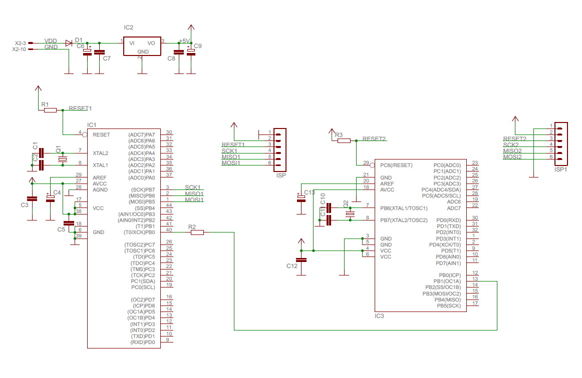 Mam taki mały problem zbudowałem uradzenie składające się z 2 mikroelektronik ale, mam problem i nie mam pojęcia co może być przyczyną. Atmega8 wysyła impulsy PWM do ATmegi32, Atmega32 ma za zadanie w ciągu 1 sekundy zliczać impulsy z 8, wartość PWM jest regulowana i gdy 8 jest zasilana z całkowicie innego źródła np programator, wszystko jest ok działa a gdy zasilam z tego samego źródła co 32 nie zlicza impulsów. Z Atmegi8 nóżka OC1a przez rezystor jest połączona z T0 ATmegi32. Może ma ktoś jakiś pomysł jak temu zaradzić ?