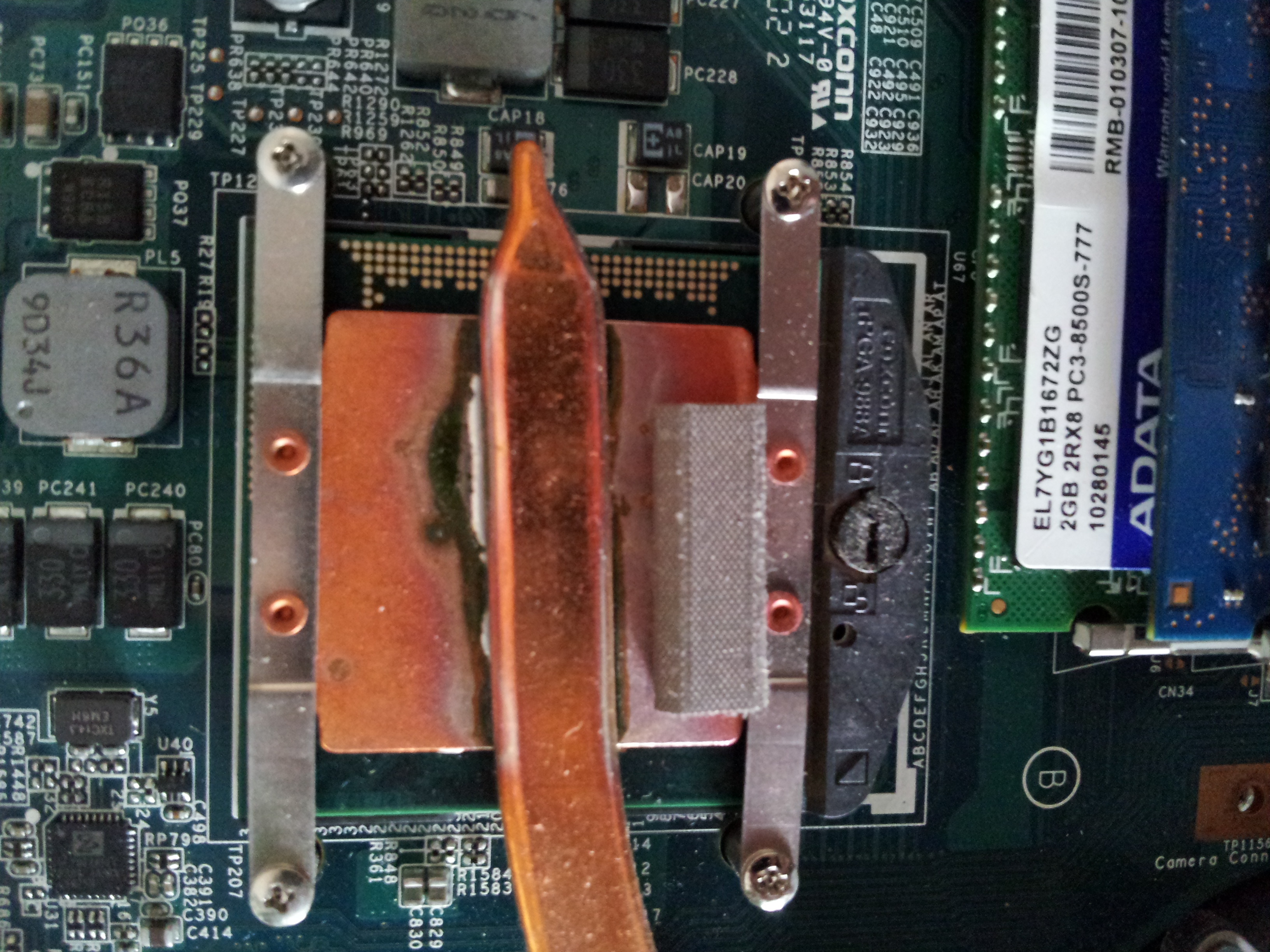 dostał się w moje ręce laptop Sony VAIO PCG-71312M, który bez powodu w różnych momentach się wyłącza. Wygląda to tak jakby nagle zabrakło prądu, po prostu gaśnie i już. Sprawdziłem go na samym zasilaczu i jest tak samo jak na baterii, więc to raczej nie wina tego... poprzekładałem kości ram, we wszystkie możliwe kombinacje i próbowałem przeprowadzić diagnostykę, niestety ani razu nie udało się dojść do 50% pierwszego przejścia, laptop zawsze wcześniej się wyłączał. Postanowiłem go otworzyć i sprawdzić czy nie jest zaśmiecony tak, że się przegrzewa (podobno był czyszczony miesiąc wcześniej więc nie brałem tego pod uwagę od samego początku. Po otwarciu kurzu wiele nie znalazłem ale moją uwagę przykuło.