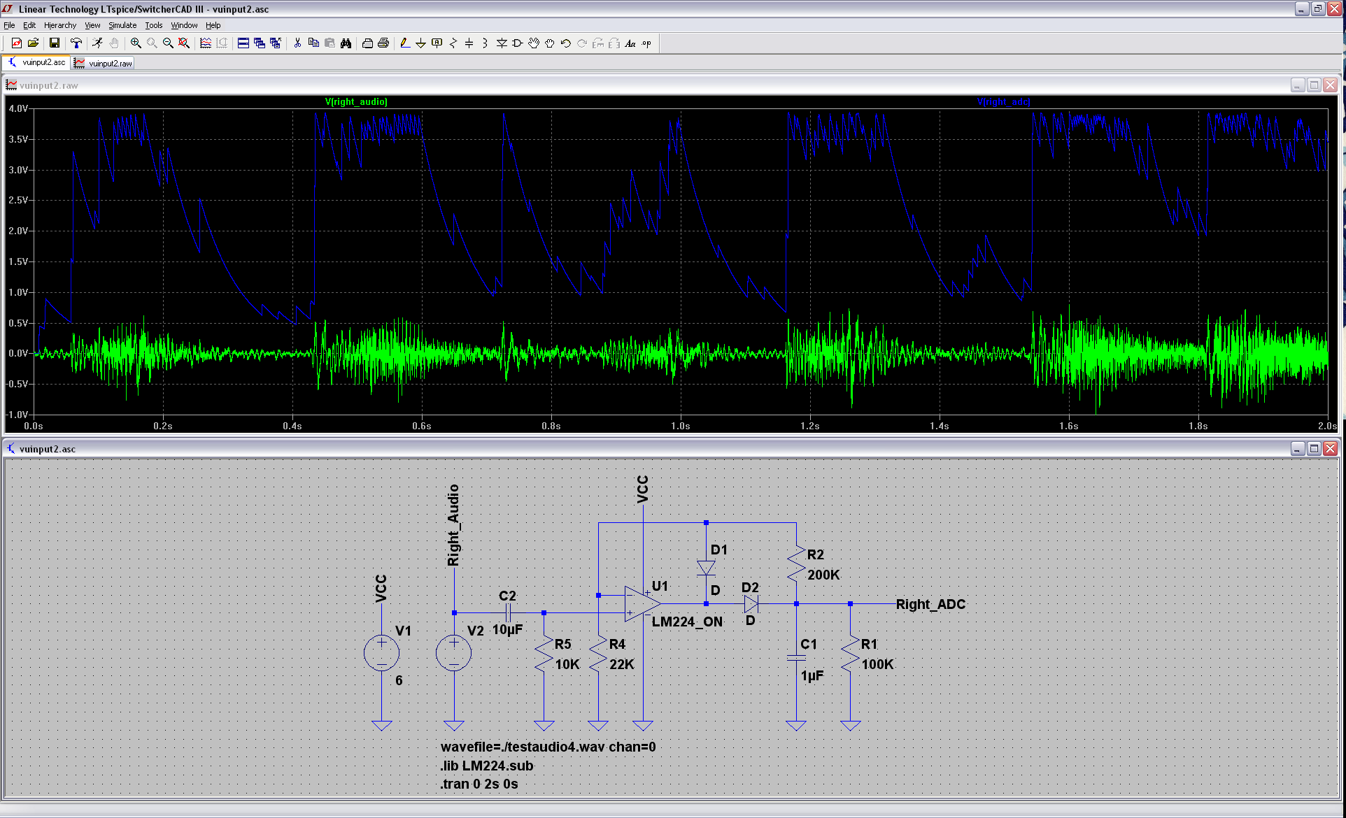 WOBI napisał:Do kompletu napisz za ile kPLN... Nawet jeśli w sygnale audio wystąpi chwilowo jakaś asymetria, to nie jest powód do prostowania dwupołówkowego. Już prędzej może to wynikać z niestabilności wskazań dla najniższych częstotliwości sygnału audio. Niekonsekwencją jest stosowanie wprowadzających spory błąd diod, nawet jeśli są germanowe, w układzie z WO, gdzie wystarczyłyby krzemowe, ale objęte sprzężeniem zwrotnym. Układ całkujący na wyjściu powinien mieć jak najmniejszą stałą czasową, aby umożliwić programową interpretację obwiedni a dodatkowa pojemność tylko to utrudni. Zastosowanie współczesnego wzmacniacza operacyjnego R2R In/Out pozwoliłoby zasilać prostownik (nawet dwupołówkowy) z pojedynczego napięcia +5V.[...] Tu masz układ aktywnego prostownika dwupołówkowego (symetrycznego) takiego jakiego używa się w profesjonalnym sprzęcie audio.