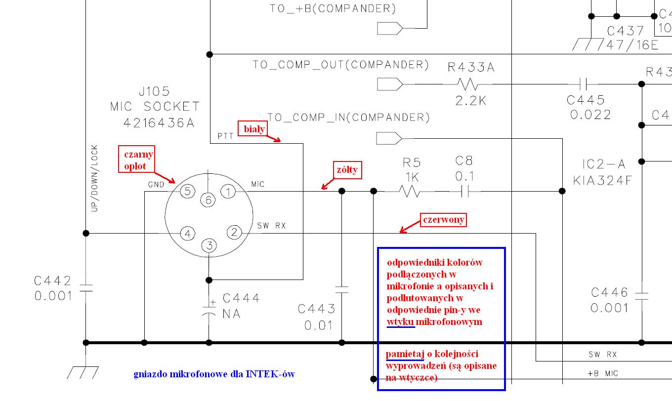 - czarny - masa GND (com dla TX/RX w 99% podłączany jest do oplotu kabla we wtyczce mikrofonowej)