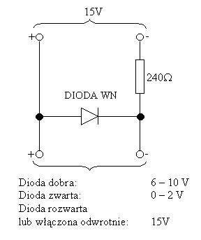Jeżeli test wykaże, że dioda nie jest zwarta to z dużym prawdopodobieństwem możemy ją uznać za sprawną.