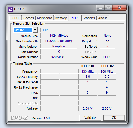 Bank2: @ 200 MHz 2.5-4-4-9 (CL-RCD-RP-RAS) / 12-15-3 (RC-RFC-RRD)