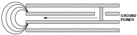 Szum na wylewkach masy i zasilania, gdy dotrze do krawędzi tych pól lub do krawędzi płytki drukowanej zostanie wyemitowany, jak pokazano na poniższej ilustracji. Jeśli natomiast na brzegach umieści się struktury ekranujące to energia emisji zostanie odbita to wewnątrz w przestrzeń międzywarstwową co w konsekwencji spowoduje wzrost poziomu szumów w polach masy i zasilania układu.