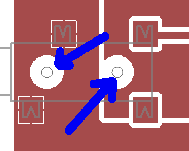Na pierwszym widzimy gniazdo z dwoma otworkami stabilizującymi element mechanicznie. Kiedy wrzucam element na PCB, masa rozlewa się elegancko z zachowaniem dodatkowego dystansu do zaznaczonych (do wiercenia) otworów. Chciałbym ten dystans otworu od rozlanej masy wyzerować (usunąć), niestety nie widzę odpowiedniej opcji. Proszę o wsparcie.