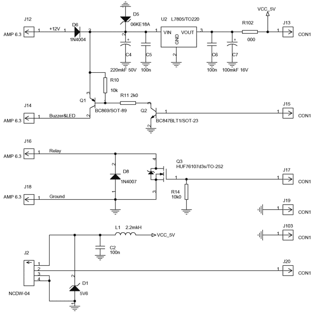 Czujnik temperatury - MAXM\DALLAS DS18х20 (DS1820); nie przedstawiono go na schemacie. Podłącza się go do płytki mocy - J2 (lub przewodami do płytki CPU).